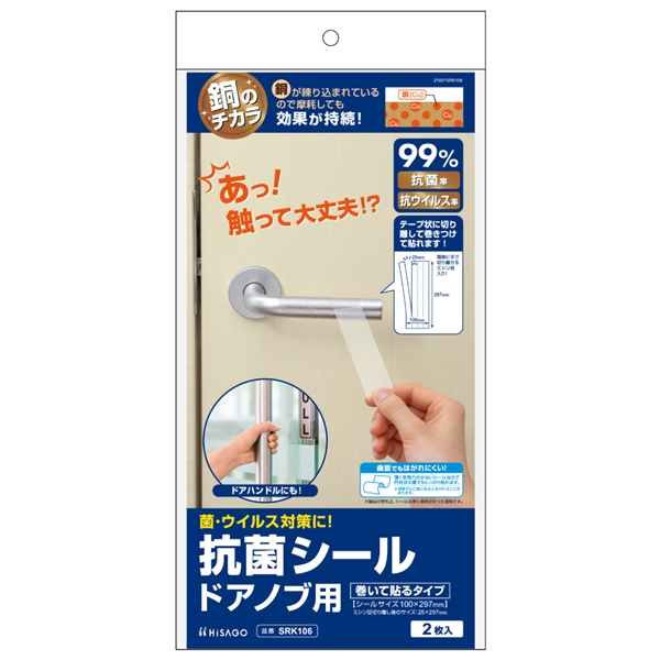 抗菌シール ドアノブ用 SRK106 100×297mm 巻いて貼るタイプ 2枚