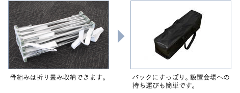 布製スクリーンなのでコンパクトに収納ができ、持ち運びも容易です。