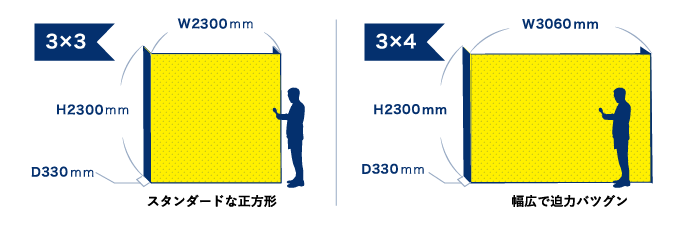 本体サイズは3×3と、3×4の2サイズをご用意