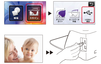 紙や布にプリントされた模様、画像、型紙、手描きイラストなどをスキャンして画像データとしてUSBメモリへ保存することができます。カットする前のバックアップのために元イメージをデータ化して保存しておく場合などに便利です。