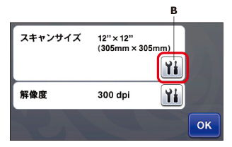 スキャンサイズの「B」を押して、スキャンサイズ設定画面を表示します。