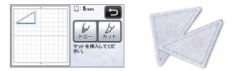 ペンとペンホルダーを使って、素材に模様を描くこと(ドロー)ができます。ぬいしろ幅を設定して、素材にぬいしろを描いてからカットすることもできます。ドロー機能は、キルトピースの作成にも便利です。