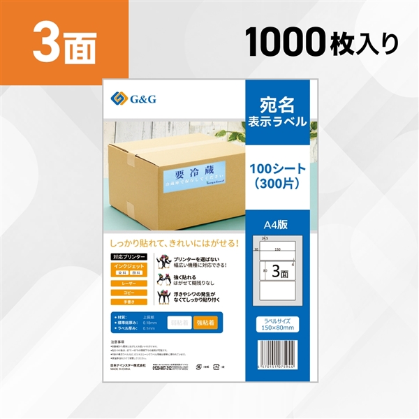 ラベルサイズ | 3面強粘着 |