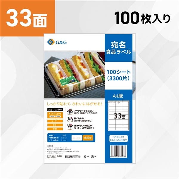 ラベルサイズ | 33面強粘着 |