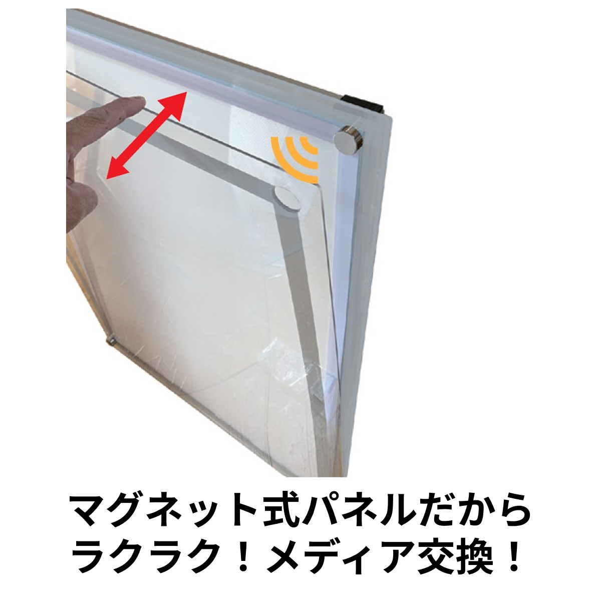 ワンタッチで前面パネルを開けるだけで、ポスターをサッと交換できます。
