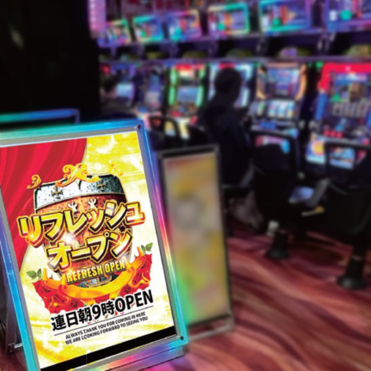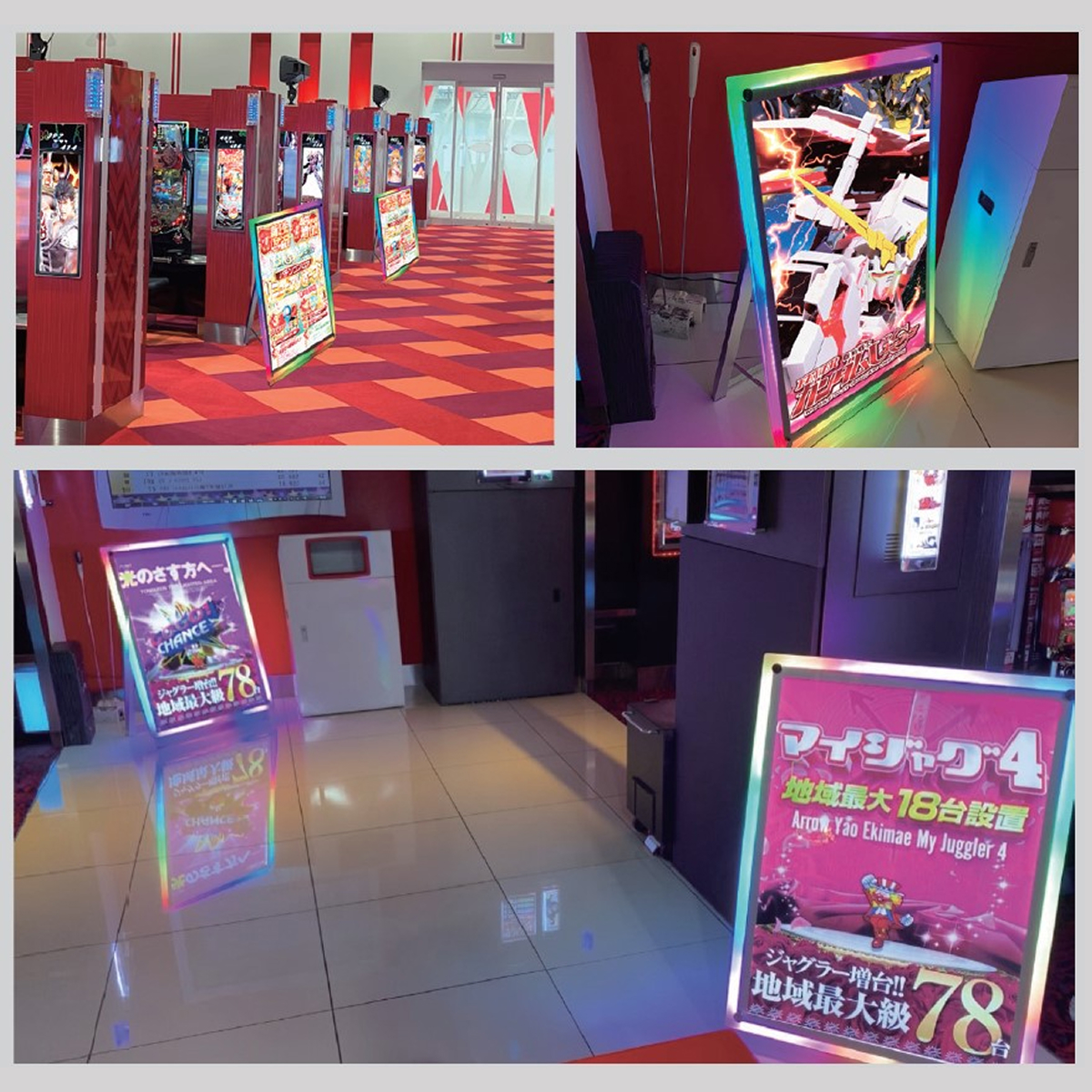 エッジパネルに反射される光は今までにない、滑らかで柔らかい印象の光をパネル部分全体に反射させることができるため華やかな演出で訴求効果を最大限に発揮します。