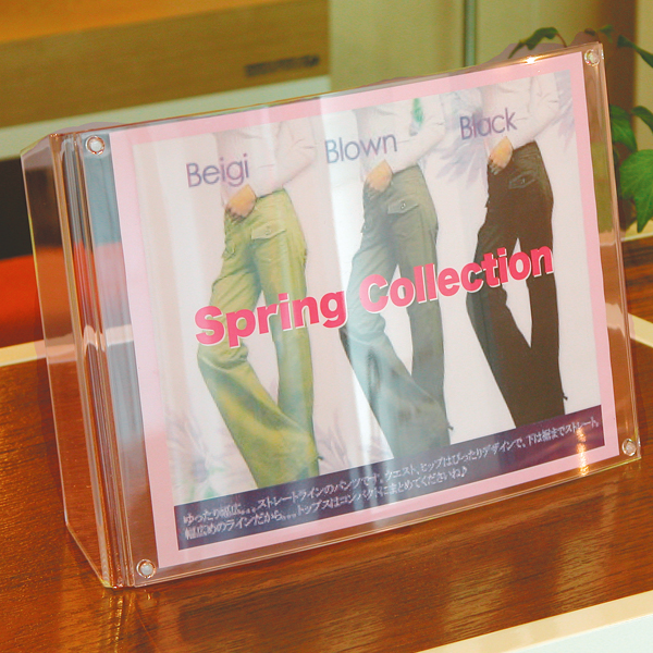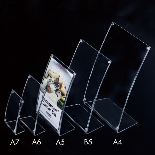 種別 A7 本体サイズ W86×D40×H130mm 中紙寸法 W74×H105mm 素材 アクリル2mm厚、アクリル3mm厚、ネオジム磁石 備考 ○タテ置き・ヨコ置き・寝かせ置きに対応