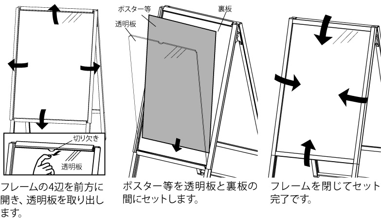 【屋内用】フレームを4辺開閉してポスター交換可能