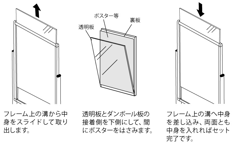 ポスタースタンド看板 2381W B1 フレームスライド式 直立両面 ホワイト