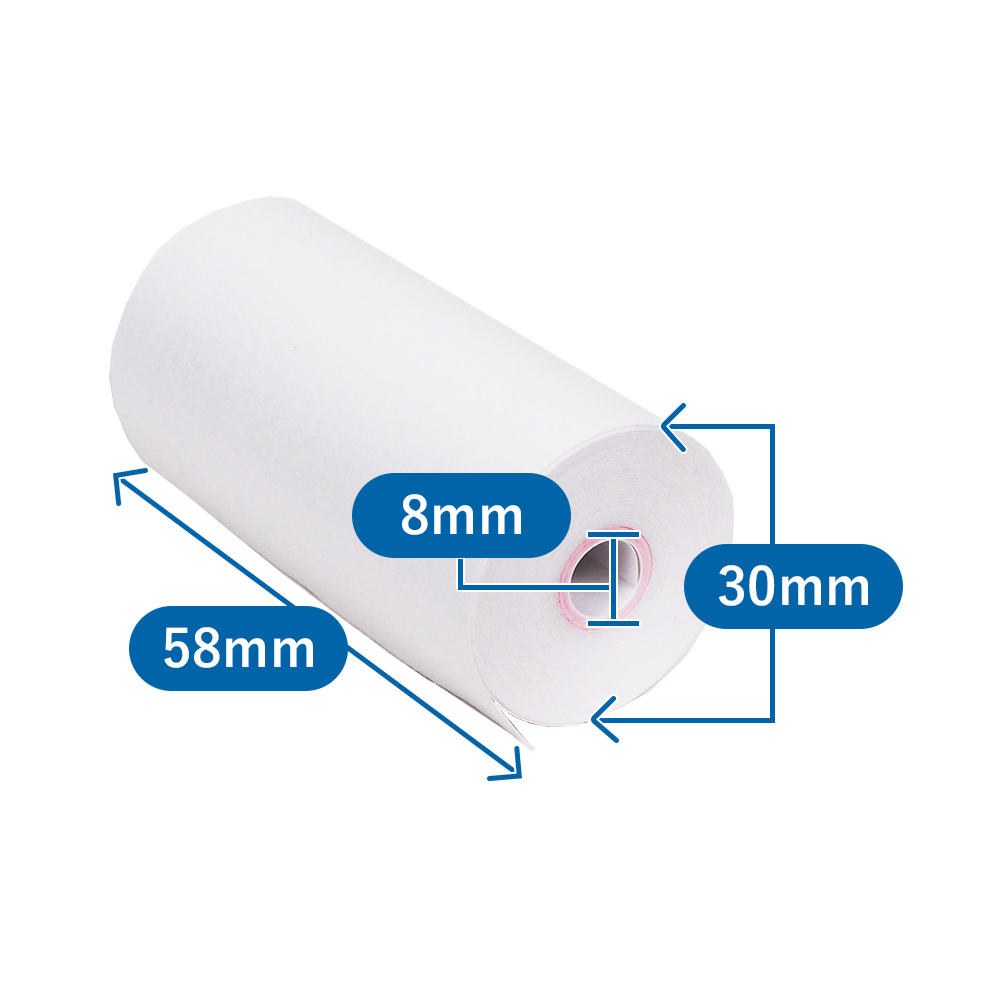 感熱レジロール紙(ノーマル保存)幅58×外径30×芯径8mm コアレスタイプ 100巻入