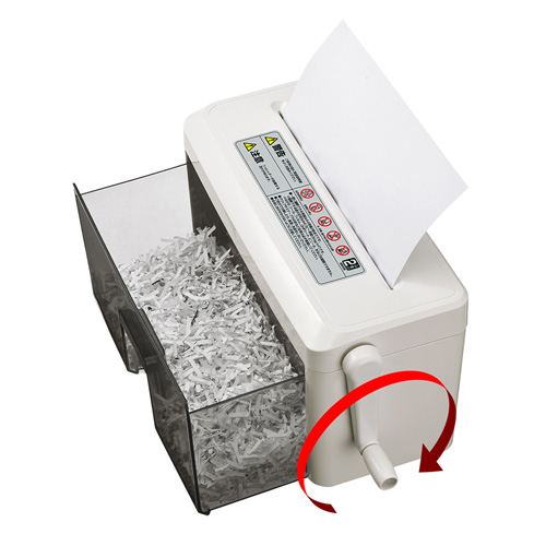 ゴミ捨てに便利な引き出し式の手動式クロスカットシュレッダー。