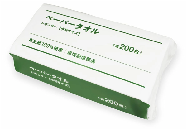 - 再生紙100%使用で環境にもやさしい、柔らかく吸水性に優れたペーパータオルです。