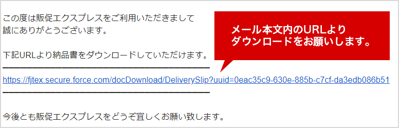 メールに記載のURLよりお客様ご自身で発行、ダウンロード、印刷が可能でございます。