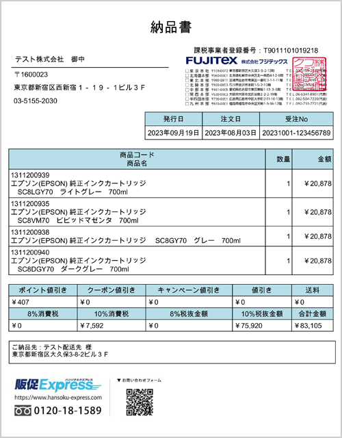 ※請求書・払込受領書または振込み票はインボイス非対応のため弊社から発行する納品書での対応となります。