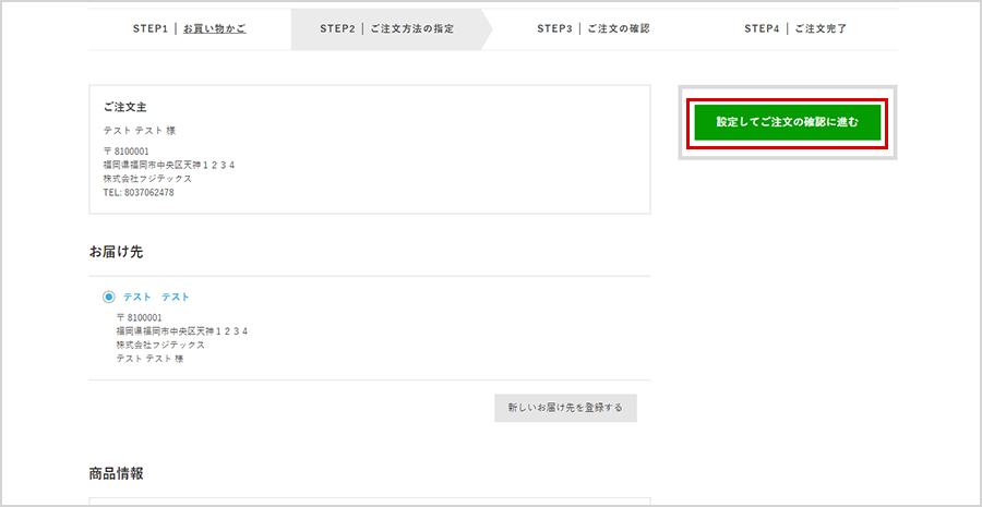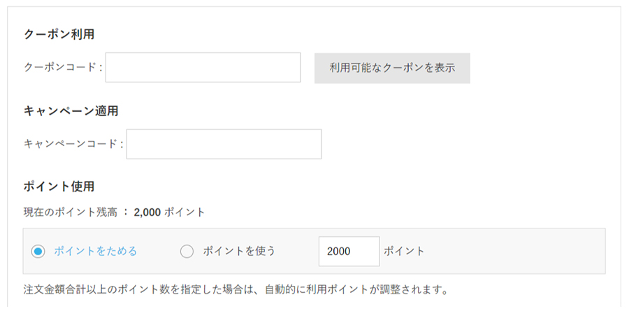 お届け先の指定、クーポン・ポイント・キャンペーンの設定・お支払い方法の指定を行えます。 設定後、『設定してご注文の確認に進む』ボタンをクリックしてください。