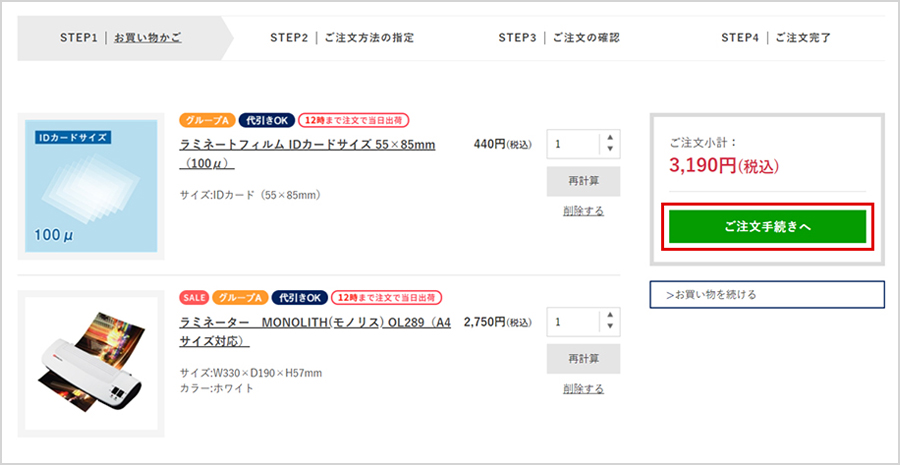 ゲスト注文の方は発行ができませんので、事前に会員登録をお願い致します。