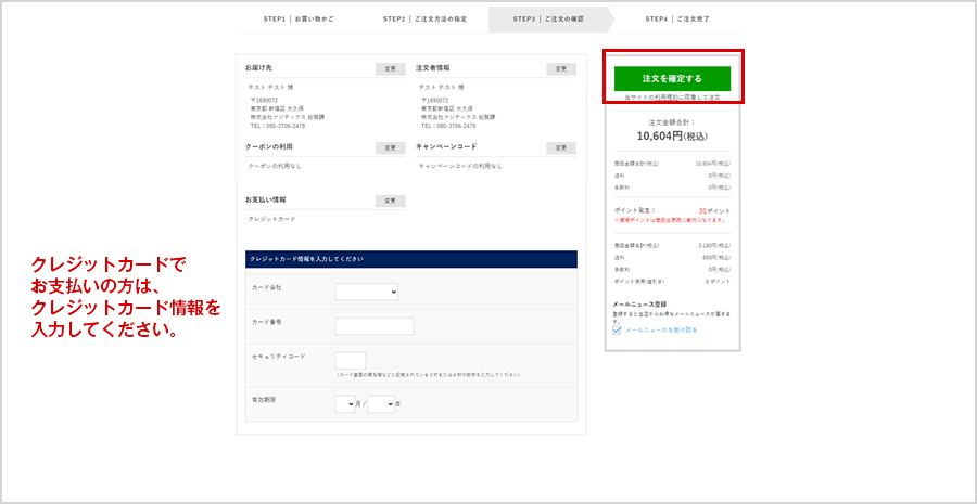 ※クレジットカードをご利用のお客様は、クレジットカード情報を入力してください。