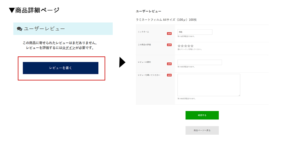 ③レーザーレビューを書き込みます。※ユーザーレビューは会員様のみ投稿いただけます。ログインをお願いいたします。